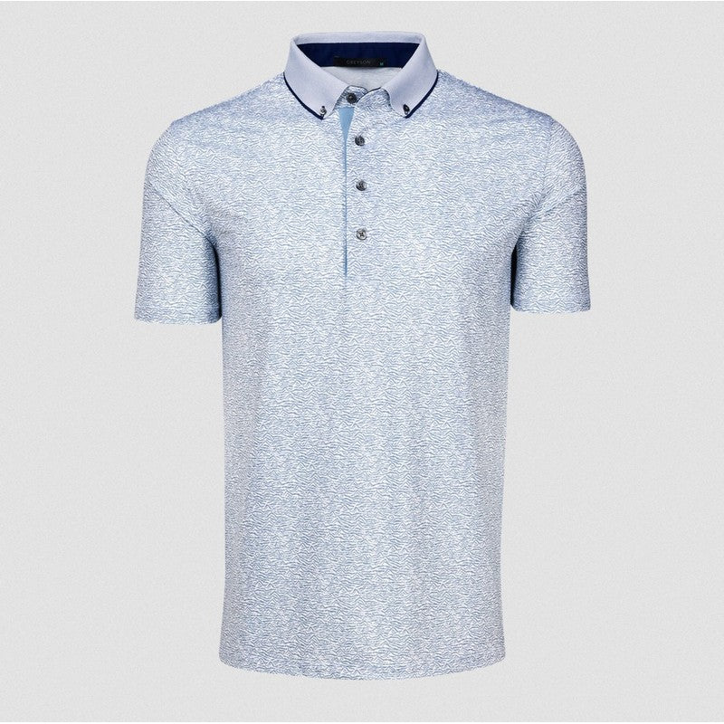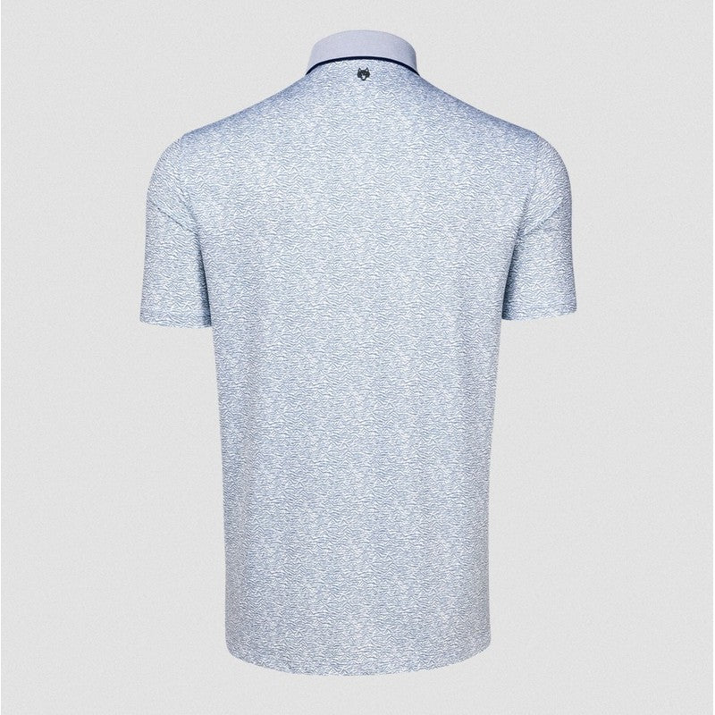 The Range Short Sleeve Polo is crafted from lightweight performance fabric that delivers breathability, quick-drying function, and anti-odor technology. Featuring an all-over abstract topographic print that nods to its name, it includes a button-down knit cutaway collar and a four-button placket with contrast detailing under and at the top for understated sophistication. The open hem and cuffs offer a comfortable fit that moves with you throughout the day, making it ideal for the course or everyday wear.